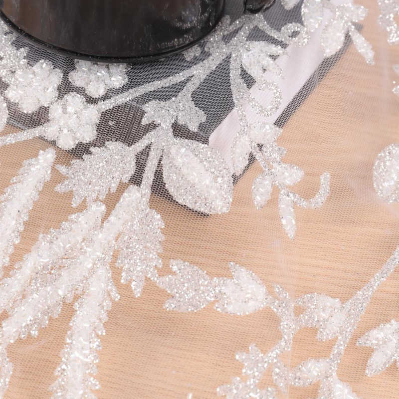 Makakaasa ka na bumili ng Zhongxing Silver Sequin Beaded Lace Fabric Wedding mula sa aming pabrika at iaalok namin sa iyo ang pinakamahusay na serbisyo pagkatapos ng pagbebenta at napapanahong paghahatid. Gamit ang lace fabric, ang mga materyales na ginamit sa tela ay kinabibilangan ng foaming, glue beads, sequins na may mga butas, stereo drills, sequins, bead tubes, pearls, atbp. Karamihan sa mga tela ay kumbinasyon ng maliliit na sequin at iba pang materyalesï¼Ginagawa nito ang tela magmukhang mas three-dimensional at maganda.