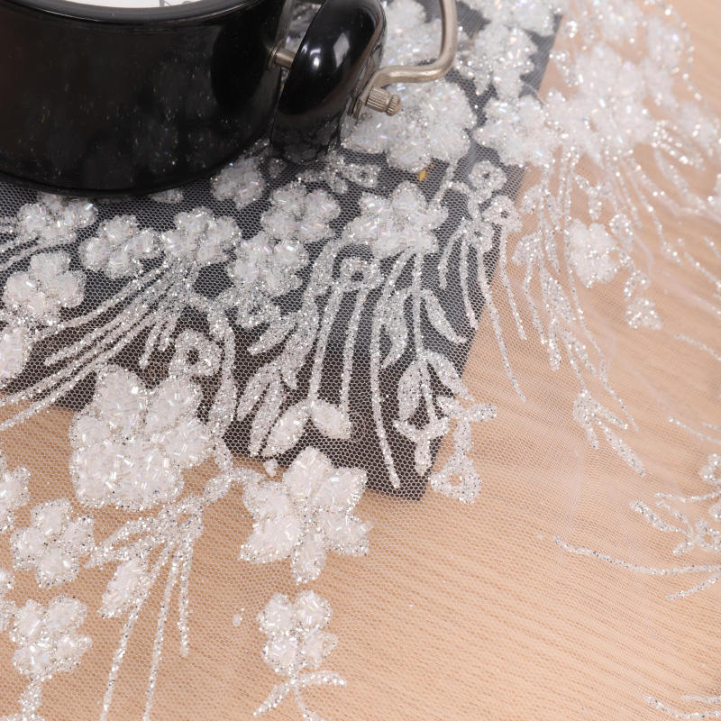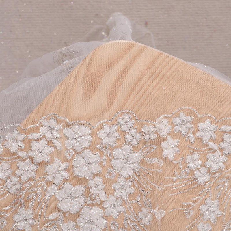 Makakaasa ka na bumili ng Zhongxing Silver Sequin Beaded Lace Fabric Wedding mula sa aming pabrika at iaalok namin sa iyo ang pinakamahusay na serbisyo pagkatapos ng pagbebenta at napapanahong paghahatid. Gamit ang lace fabric, ang mga materyales na ginamit sa tela ay kinabibilangan ng foaming, glue beads, sequins na may mga butas, stereo drills, sequins, bead tubes, pearls, atbp. Karamihan sa mga tela ay kumbinasyon ng maliliit na sequin at iba pang materyalesï¼Ginagawa nito ang tela magmukhang mas three-dimensional at maganda.