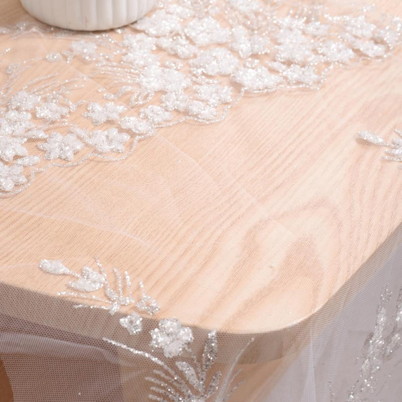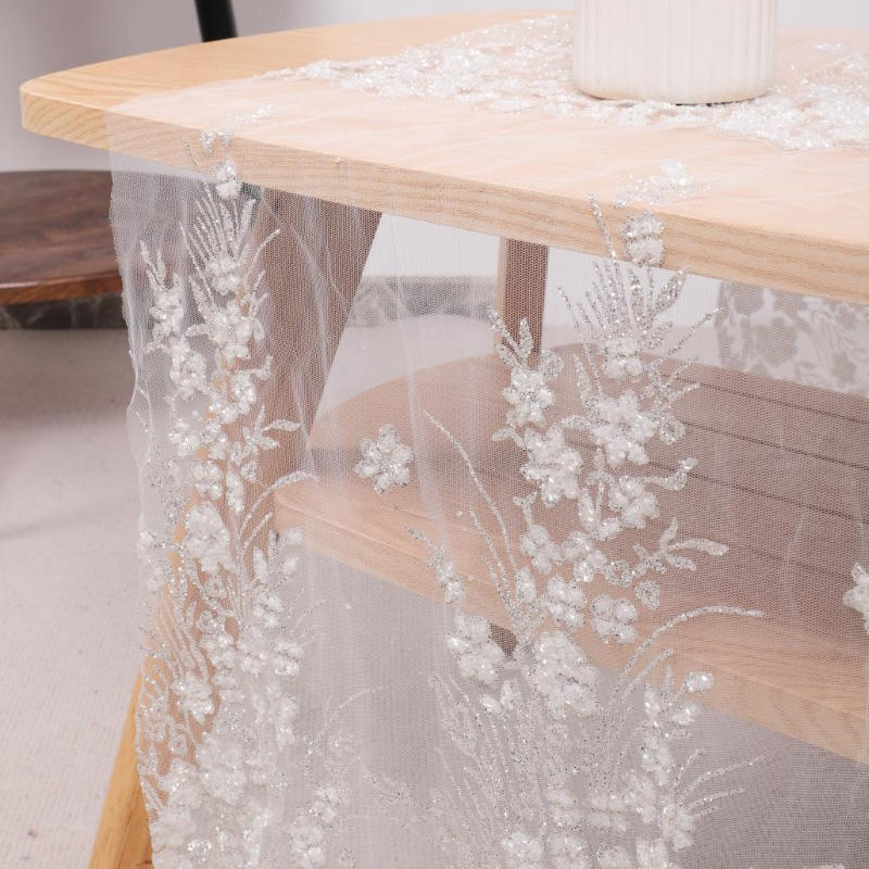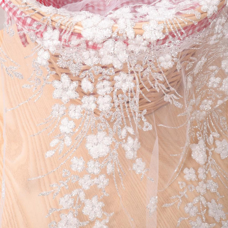 Bilang karagdagan sa paggawa ng Silver Sequin Beaded Lace Fabric na Kasal, maaari rin itong gamitin bilang cheongsam, mga damit sa entablado, fashion, bedding, mga kurtinaï¼at mga tela na takip para sa mga sofa, cushions, atbp. Kumpletong hanay ng mga kulay.